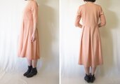 ┗襟やレースだけでなく、ポケットやファスナー、ボタンなど余計な装飾を一切はぶき、シンプルを極めたワンピースです。その分小物やアクセサリー、着る人を引き立てます。