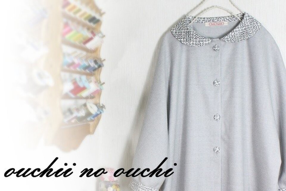 ライトグレー ウール混圧縮生地と大人気リバティタナローンSleeping Rose スリーピングローズ グレー系のフラットのヘチマカラーのドルマンジャケットをお作りしました。