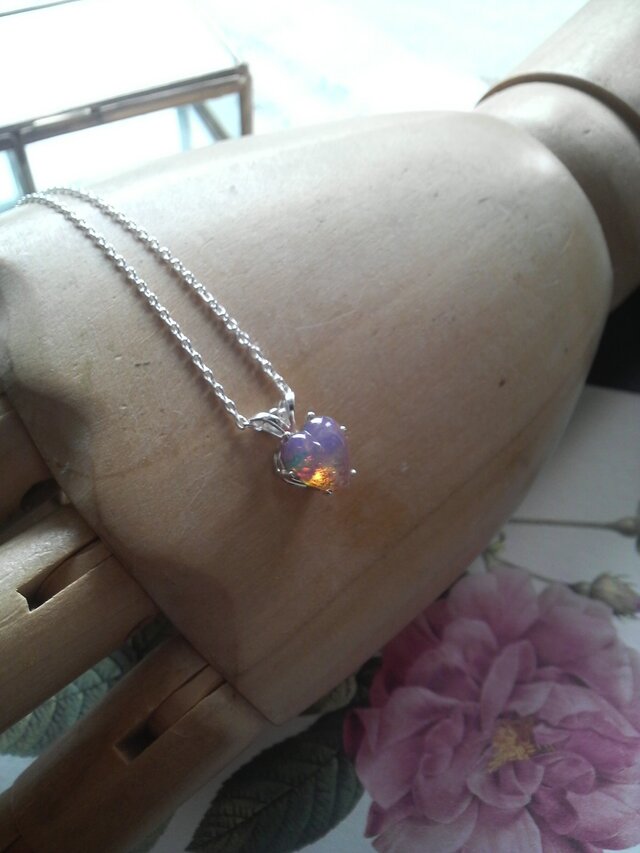 ぷっくりとしたピンクのハートオパールが可愛らしい印象的なネックレスです。