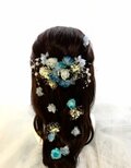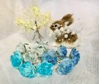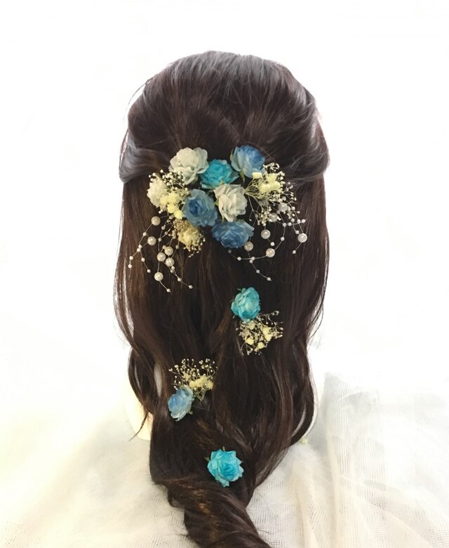 ブルーグラデーションの小さな薔薇とかすみ草と