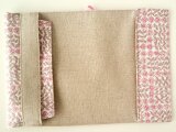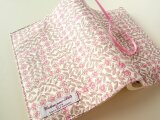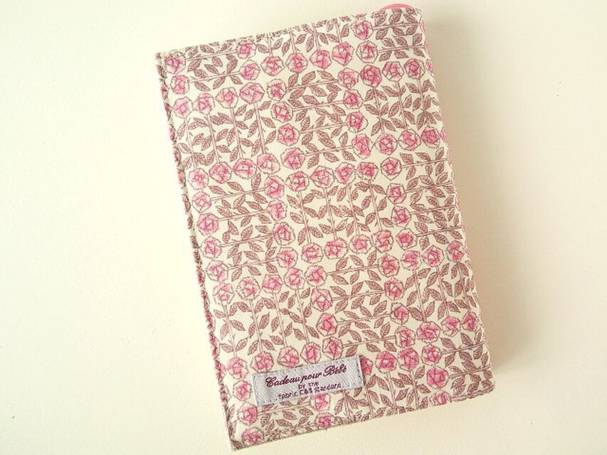 リバティの生地、スリーピングローズ Sleeping Rose(ピンク)とハーフリネンの生地でブックカバーを作りました。