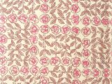 この生地は、皆川 明さん(ミナ・ペルホネン)のデザインで有名で、人気があります。ブロック上に並んだバラ、色彩がやさしくとても上品な柄です。 生地の地の色がオフホワイト、バラの色がピンク、葉の色がライトパープルです。