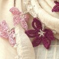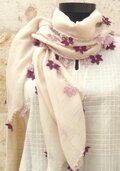 レースの花付き ふんわりストール(綿混合)クリーム&ボルドー