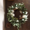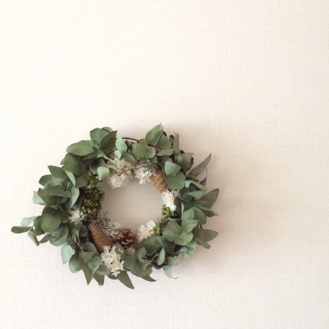 ユーカリをベースに飽きのこないシンプルなリースに仕上げました。