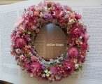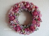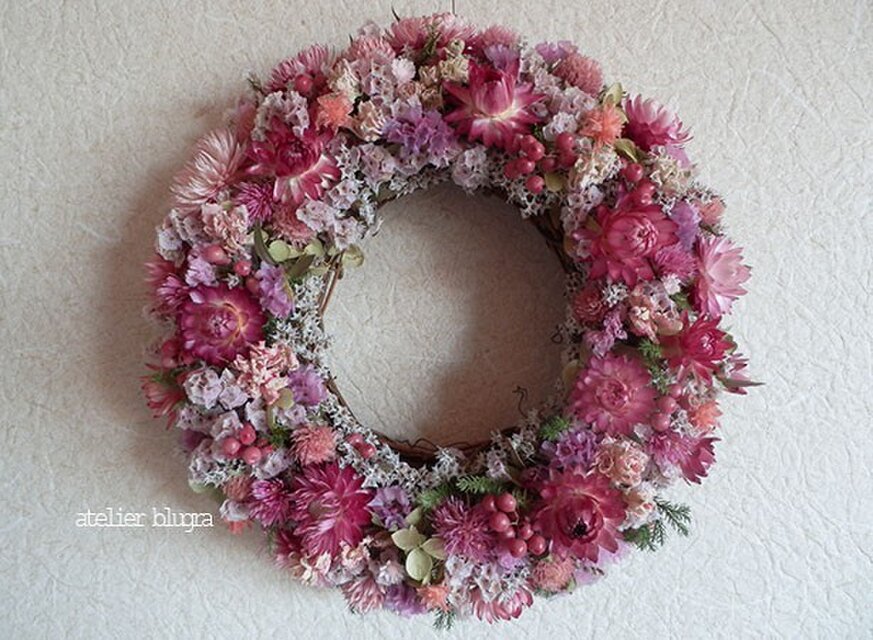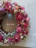 待ち遠しい春をピンクのヘリクサムがいっぱいのWreathで感じて頂きたいと思い作りました。アンティーク&セピアになりまで長くお楽しみください。