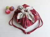 紐を緩めると風呂敷のように大きく広がりますので、物の出し入れが楽です。