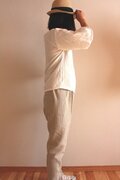 乾燥が早く、シワになりにくく、リネンのシャリ感があり、ナチュラルな風合いです。
