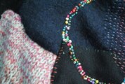 ウールフェルトの落ち着いたダークネイビーのベースにカラフルな刺繍やビーズを飾りました。