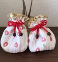 京都の蚊帳生地で作られたふきんを巾着袋に仕立てました。