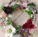 季節が進み、春が近づいています。そこで、クリスマスローズとバラのガーデンリースを春色にリニューアルしました。