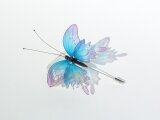 虹色のような蝶の羽は透き通る青から、徐々に外側に向かって紫へと変化していきます。とても艶やかな羽には微かにパールが効いていて、単色だけでは表しきれない華やかさのある仕上がりとなりました。