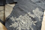 夏用の薄手のデニムスカートの裾で、銀色の花が揺れ動きます。