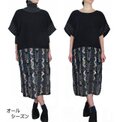 大きいサイズのドルマンスリーブ(着物袖)ラオス浮き織切替ロングワンピース