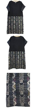 ラオス北部の美しい浮織り古布とチェンマイコットン使用した大人の素敵な切替ロングワンピース。希少価値のあるサロンにチェンマイコットンを合わせて仕立てました。身頃と一体になった着物袖(ドルマンスリーブ)はアームホールもゆったりです。