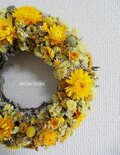 待ち遠しい春をこのイエローWreathで感じて頂きたいと思い作りました。アンティーク&セピアになりまで長くお楽しみください。