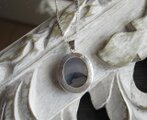 光のかげんで、空の部分にアゲート(メノウ)特有の縞模様もうっすら見え隠れして、情緒あるペンダントに仕上がりました。