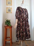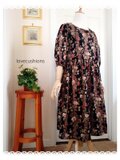 ♥薄地ジャガード織りのシックな黒地に花柄のワンピース。