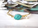 アマゾナイトとパールの重ね着けバングル w514