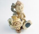 服の一部分と壺から出ている水部分に薄く透明釉を施しているので、その部分は少し光沢があります。