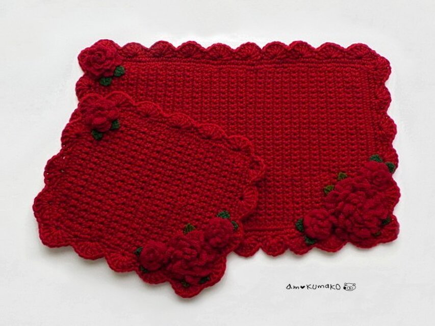 画像④:一周ぐるりとレースの縁編みを施し、角に大きな薔薇とミニ薔薇を配置しています。