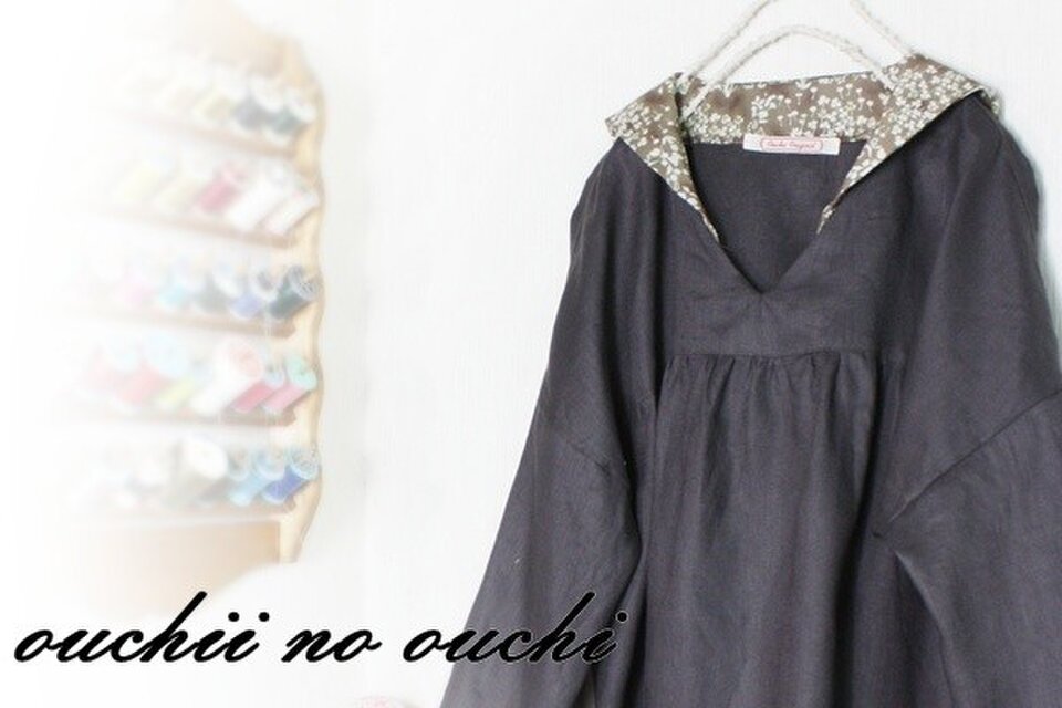 しっとりリネンのチャコールブラウンとリバティタナローンyosieヨシエでお作りしましたセーラーシャツチュニックです。