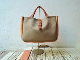 神戸ORZO ヌメ革×8号帆布 トートショルダー2wayBAG カーキ×ベージュ