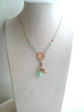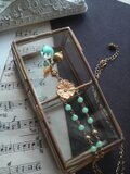 春風が吹いてきそうな爽やかなお色でお作り致しましたネックレスです。沢山のヴィンテージのお品をお使いしております。