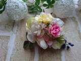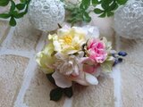 結婚式の前撮り用にお願いしました。 無事に前撮りが完了したので、感想書かせて頂きます。 自分では花の色合いや種類を決めることができず、色打掛の写真を元に作って頂きました。 完成品は依頼した通り、上品で存在感のある綺麗な花飾りでした。 実際に色打掛を着てヘアメイクさんに付けてもらったら、着物とピッタリ! 大大大満足です! お願いして本当に良かったです。 ありがとうございました。