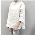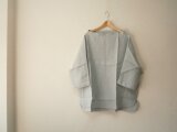 ★en-enフランスリネン・ボトルネック・ドルマンプルオーバー七分袖・グレイッシュな春ブルーグレー