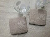 織り目の細かいリネン生地に、伝統図案 「 花十字つなぎ 」 を刺したコースターです。