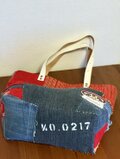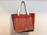 新作☆デニム&手織り 本革トートバッグ Mプラスサイズ 深紅のコントラスト