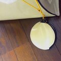 たっぷりのマチで入れ口も大きいので収納力抜群です。留め具はないので革紐で結んで使います。ファスナーミニポーチをつけています。キーケースや小銭入れに使えます。