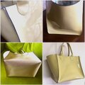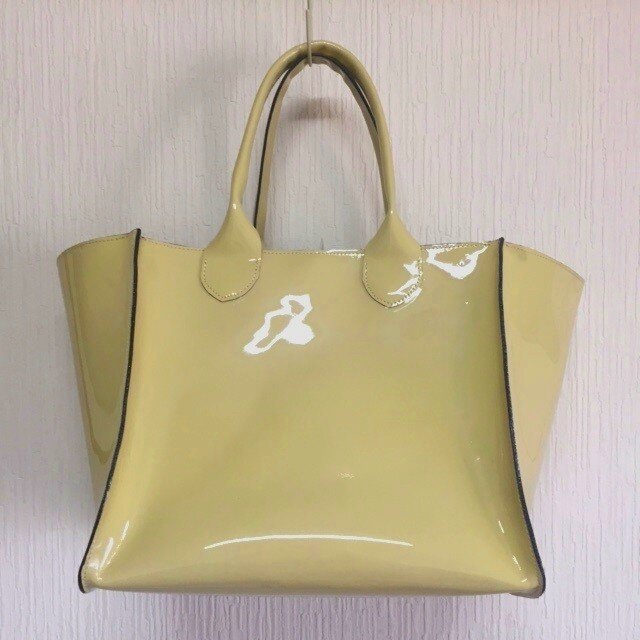 クリーム色のエナメル加工した牛革(パテントレザー)で作ったトートバックです。