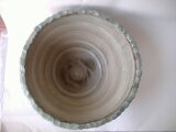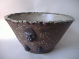 外側を灰釉掛け、内側を透明釉掛けし1240度で焼き上げ、煙で燻して黒くしています。