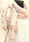レースの花付き ふんわりストール(綿混合)クリーム&ピンク