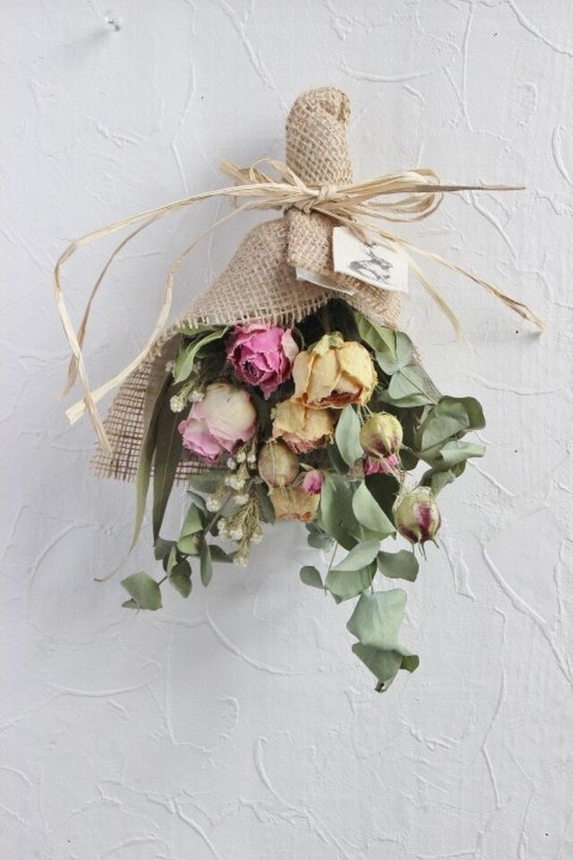 *花材:ドライフラワー(ばら、パールアバランチェ、ピンクアバランチェ・丸葉ユーカリ・ニゲラ・セファラリア・フィリカロック・ミニバラ)