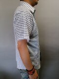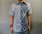 手作り手ぬぐい板締め藍錠染めシャツ(弐)