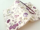 リバティの人気生地、ガーデン Garden (パープル)とハーフリネンの生地で文庫本サイズのブックカバーを作りました。
