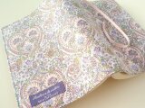 ハート型のペイズリー柄で繊細な模様のキティグレース。人気がありいろいろな配色の生地が出ています。この生地は地の色がライトパープル、ハートの内側の色がライトピンク、ほかにイエローパープル、オレンジと全体的に優しい色彩になっています。