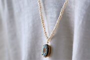 少しレトロ感のあるトップが定番とはまた違ったパールネックレスを