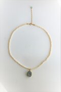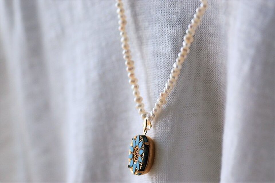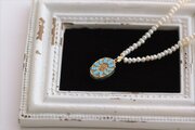 小さな淡水パールをつなぎ、トップにアンティークのペンダントトップをあしらいました。