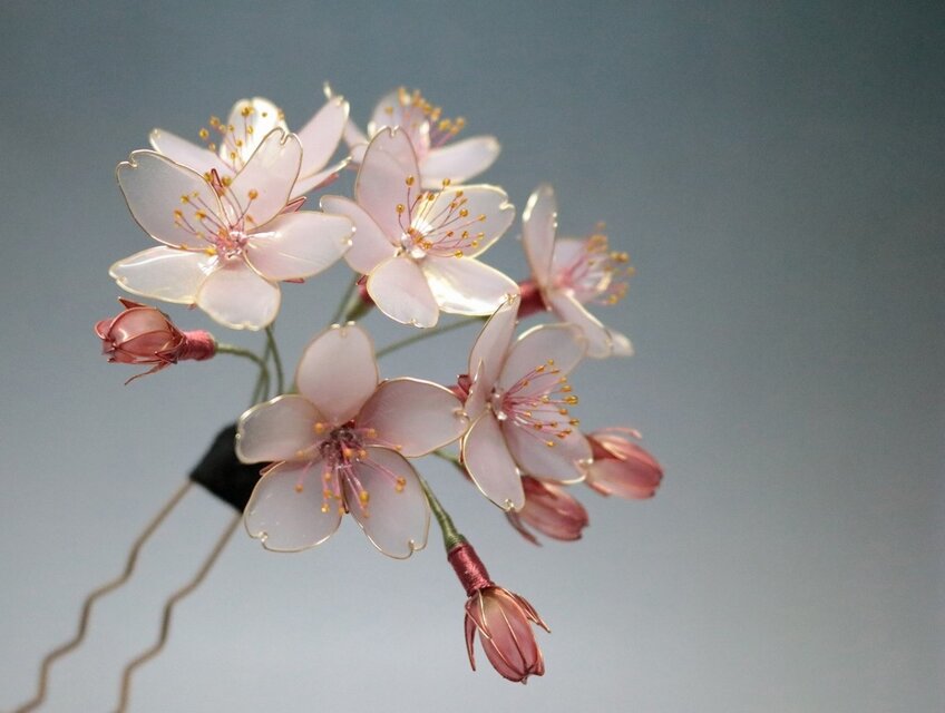 桜の花をモチーフに、ディップアートの技法を用いて制作した簪(かんざし)です。