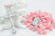 明るいサーモンピンクがとてもかわいらしいロザリオになりました。