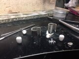 白く見えているのが銀粘土で作っている部分 銀色は925シルバーで制作しています。
