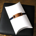 プレゼント用に革がチャームポイントのゴムベルト(有料)でラッピングを致します。