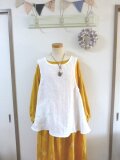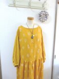 ミナ風森の刺繍ダブルガーゼxリネン生地 バルーンスリーブワンピース ML