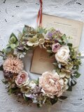 アンティークピンク、ベージュ、グリーンのナチュラルリース w-2