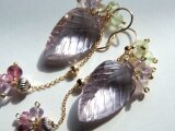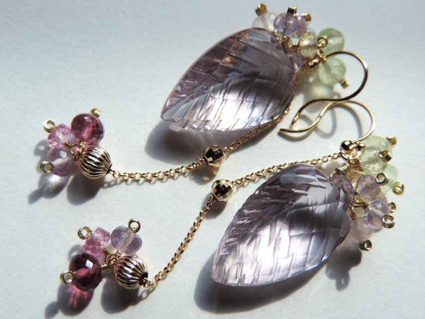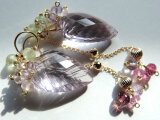 ~ K18ピンクアメジストファンシーリーフカービング大粒ピアス ~