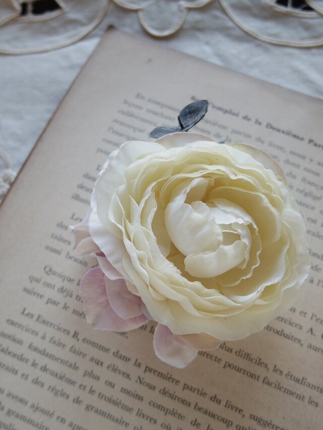 ラナンキュラスとアジサイのシンプルコサージュ c-2