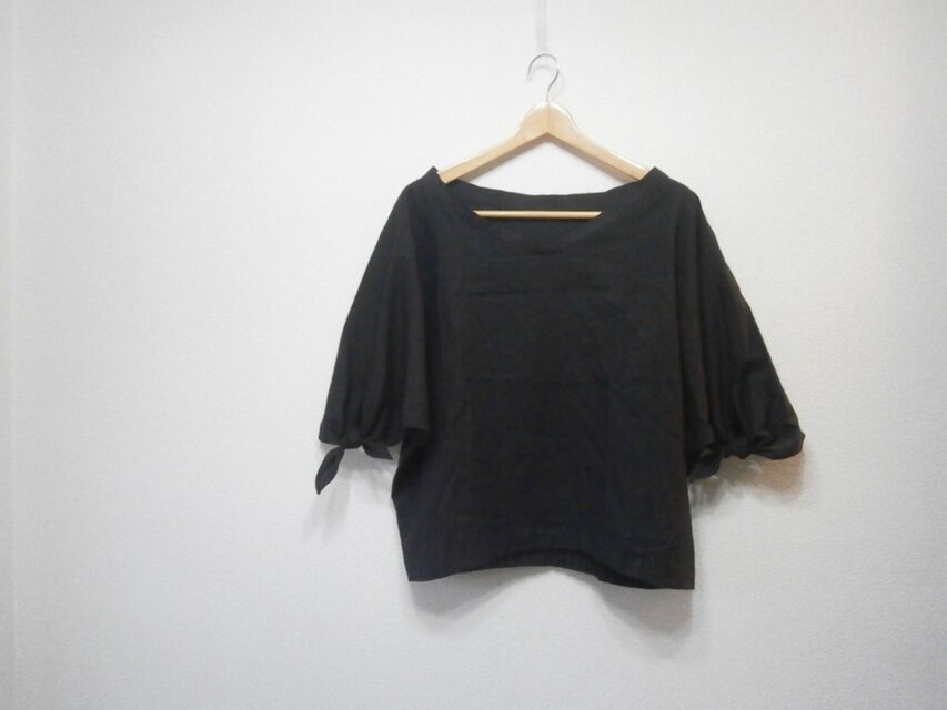 ★en-enコットンリネン・襟抜・袖リボン・黒